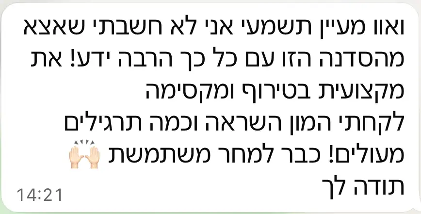 ואני גאה לשתף שריכזתי את כל הידע לסדנה אחת והפכתי אותה לדיגיטלית